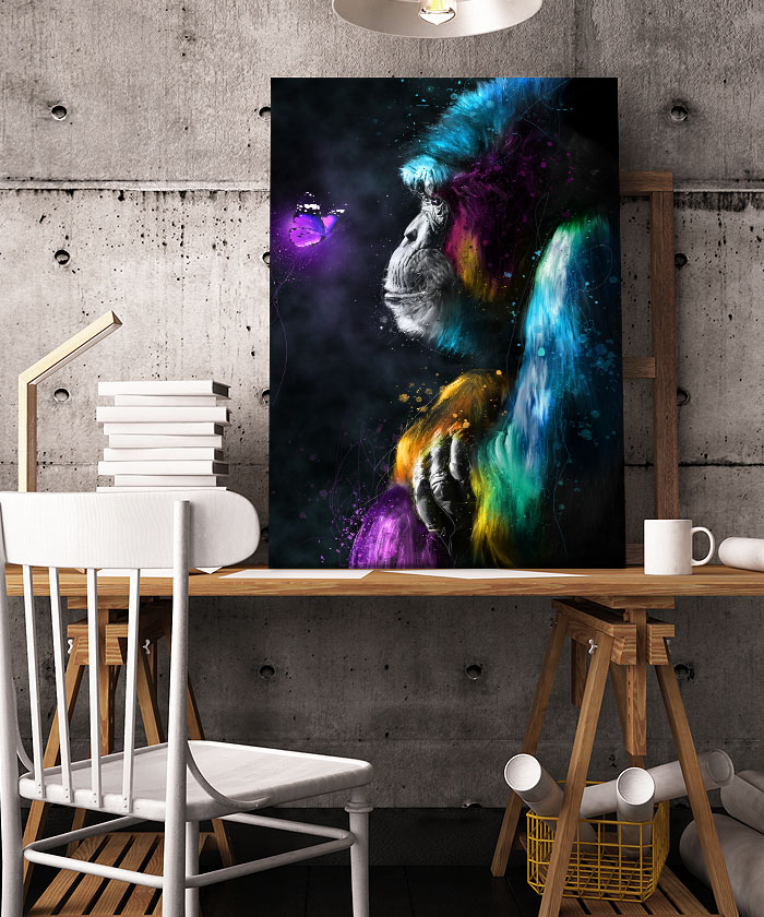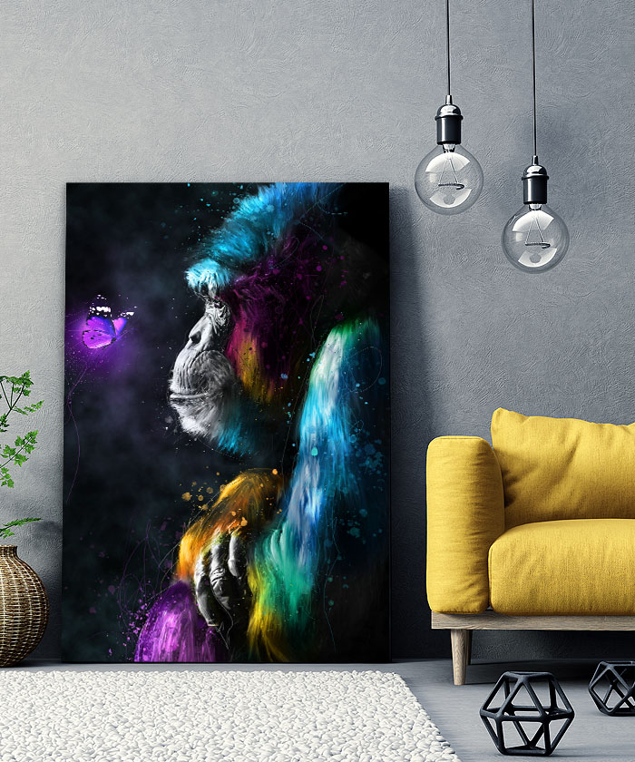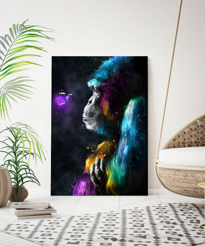 Nous vous présentons le tableau déco le gorille et le papillon pop art. Si vous faites partie de ceux qui sont fans de cet animal, vous devriez aimer ce tableau déco de gorille autant que nous. En vous proposant ce tableau décoratif, nous souhaitons apporter un zeste d’originalité à votre intérieur. Cette toile propose une touche à la fois colorée et pop art.