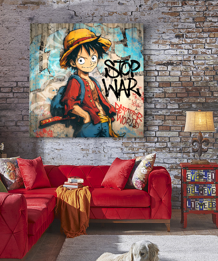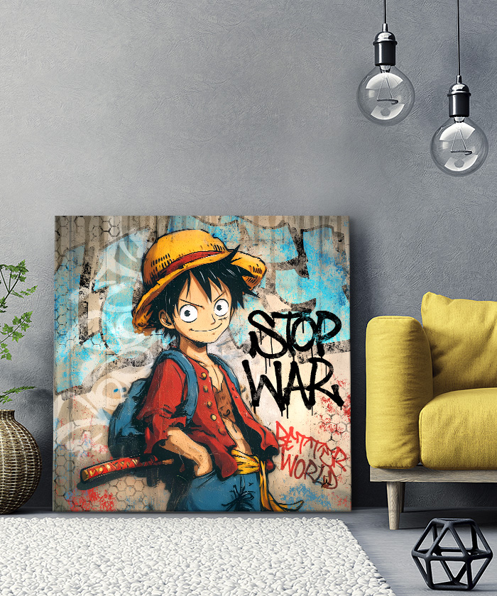 Tableau Luffy One Piece Mur street-art graffiti Stop War