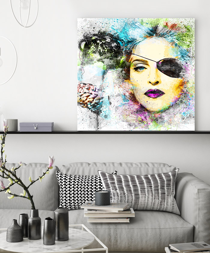 Nous vous présentons le tableau déco Madonna Aquarelle. Si vous aimez cette célébrité, vous devriez aimer ce tableau déco de Madonna autant que nous. En vous proposant ce tableau décoratif, nous souhaitons apporter un zeste d’originalité à votre intérieur. Cette toile propose une touche à la fois colorée et design.