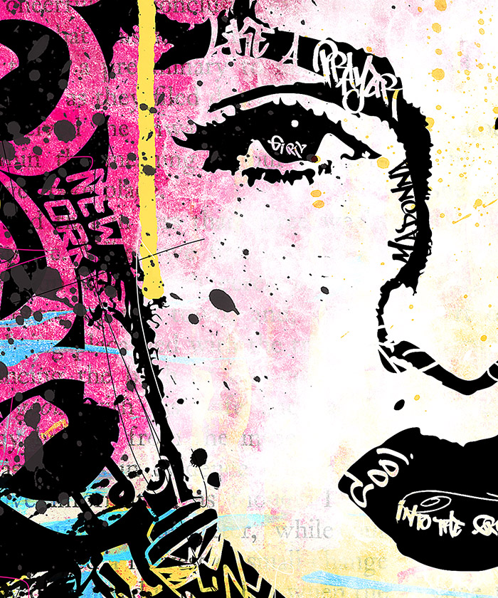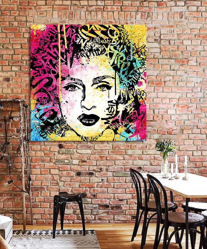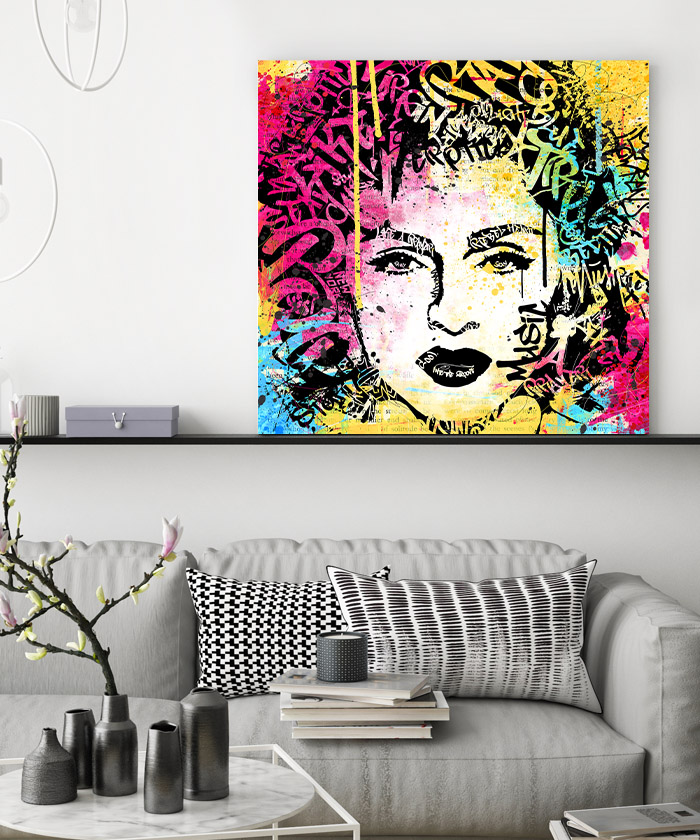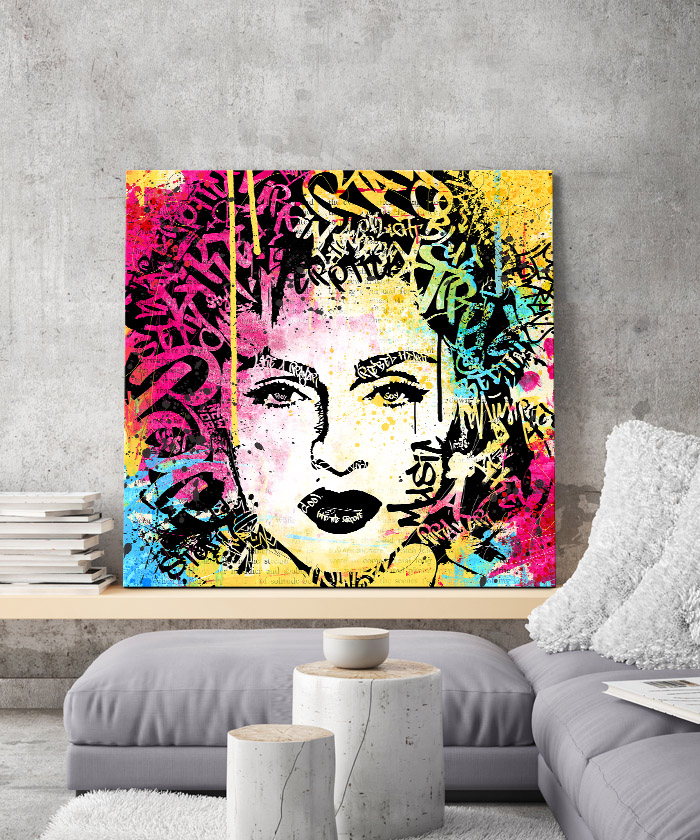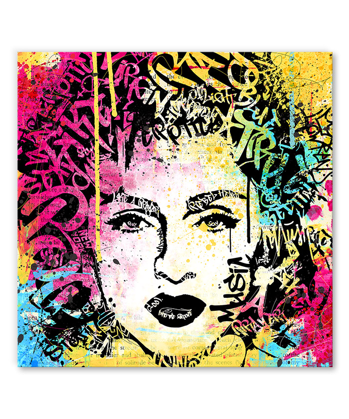 Nous vous présentons le tableau déco Madonna street artt. Si vous aimez cette célébrité, vous devriez aimer ce tableau déco de Madonna autant que nous. En vous proposant ce tableau décoratif, nous souhaitons apporter un zeste d’originalité à votre intérieur. Cette toile propose une touche à la fois street et pop-art.