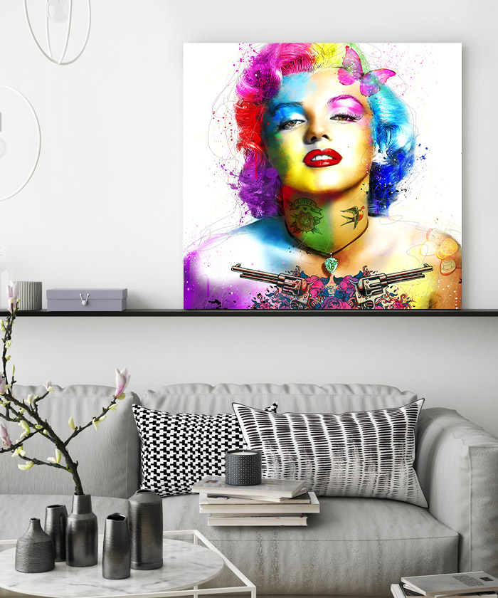 Chez Tableau Déco, nous réalisons tous les visuels de nos tableaux décoratifs. Notre métier, c’est aussi la création artistique. Ainsi, vous ne retrouverez nos tableaux nulle part ailleurs. Nous fabriquons ce tableau déco Marilyn Monroe pop art punk en France, dans notre atelier de région parisienne.