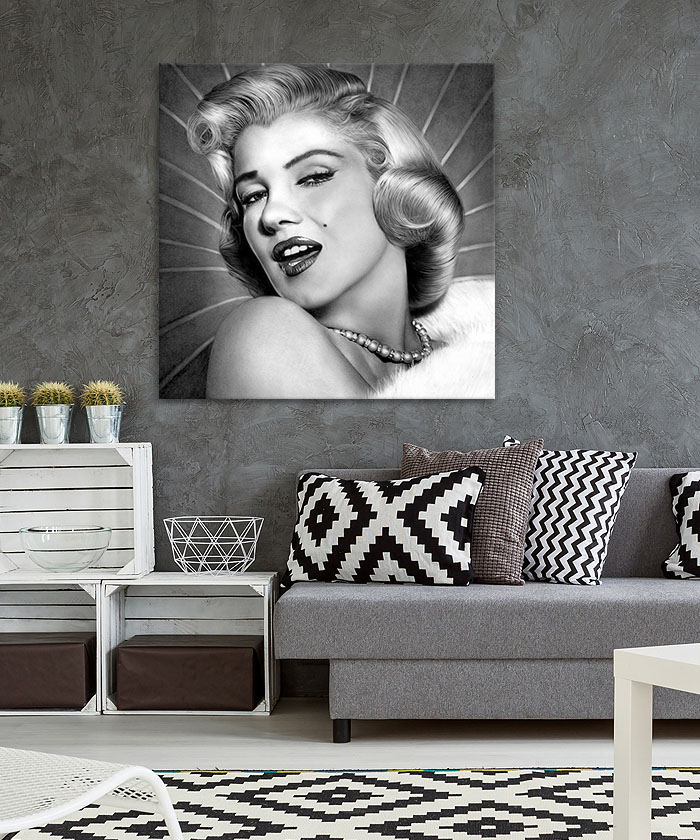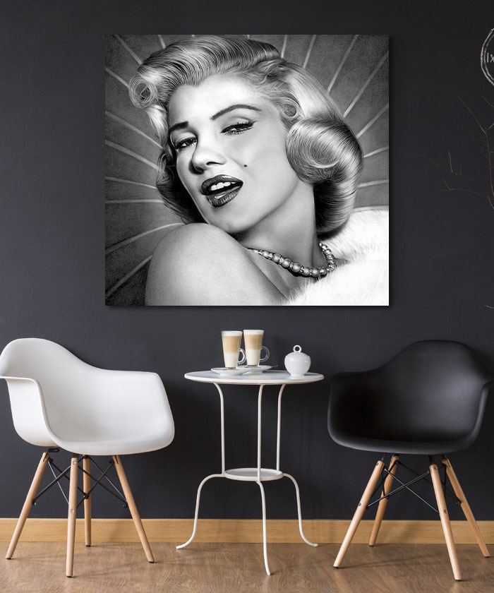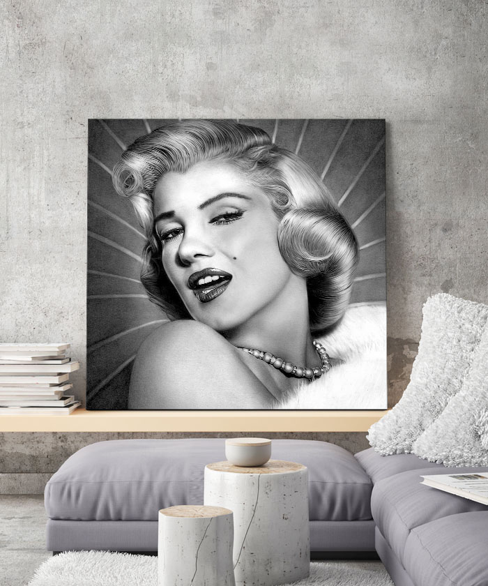 Nous vous présentons le tableau déco Marilyn Monroe Portrait noir et blanc. Si vous aimez cette célébrité, vous devriez aimer ce tableau déco de Marilyn Monroe autant que nous. En vous proposant ce tableau décoratif, nous souhaitons apporter un zeste d’originalité à votre intérieur. Cette toile propose une touche à la fois glamour et vintage.