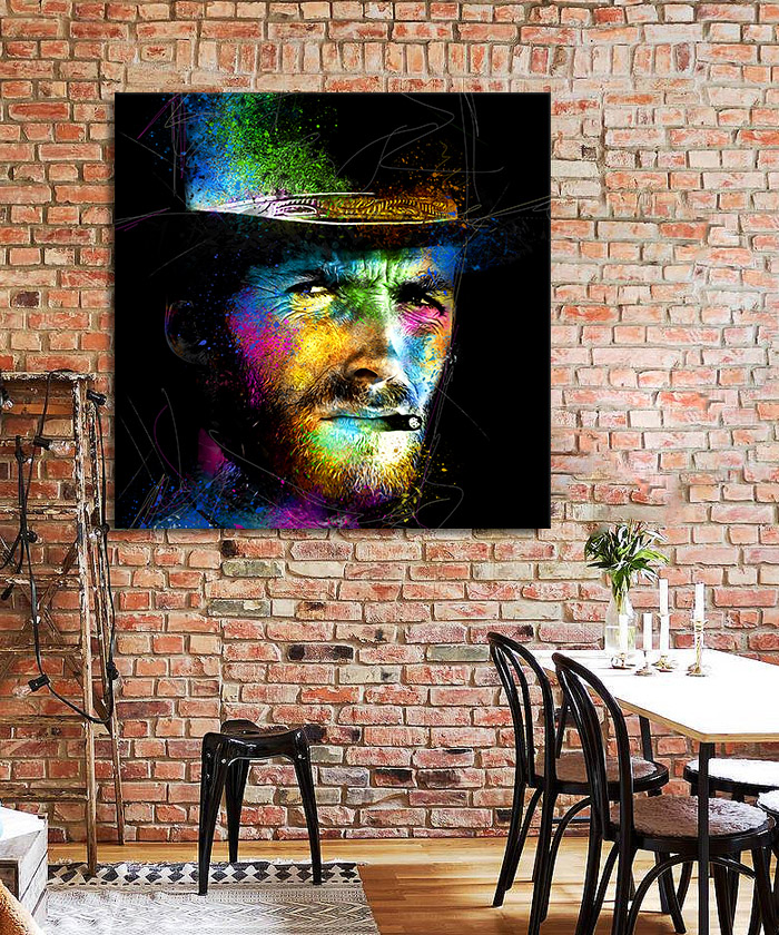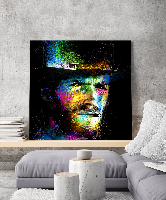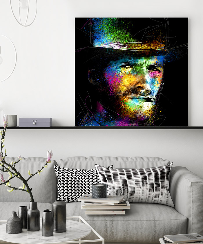 Nous vous présentons le tableau déco Clint Eastwood Pop art. Si vous aimez cette célébrité, vous devriez aimer ce tableau déco de Clint Eastwood autant que nous. En vous proposant ce tableau décoratif, nous souhaitons apporter un zeste d’originalité à votre intérieur. Cette toile propose une touche à la fois sobre et colorée.