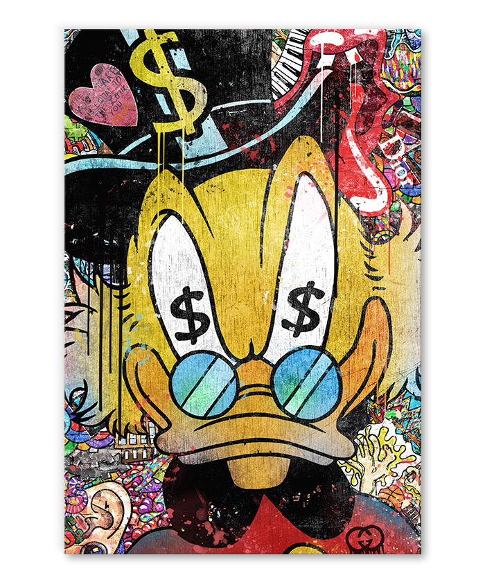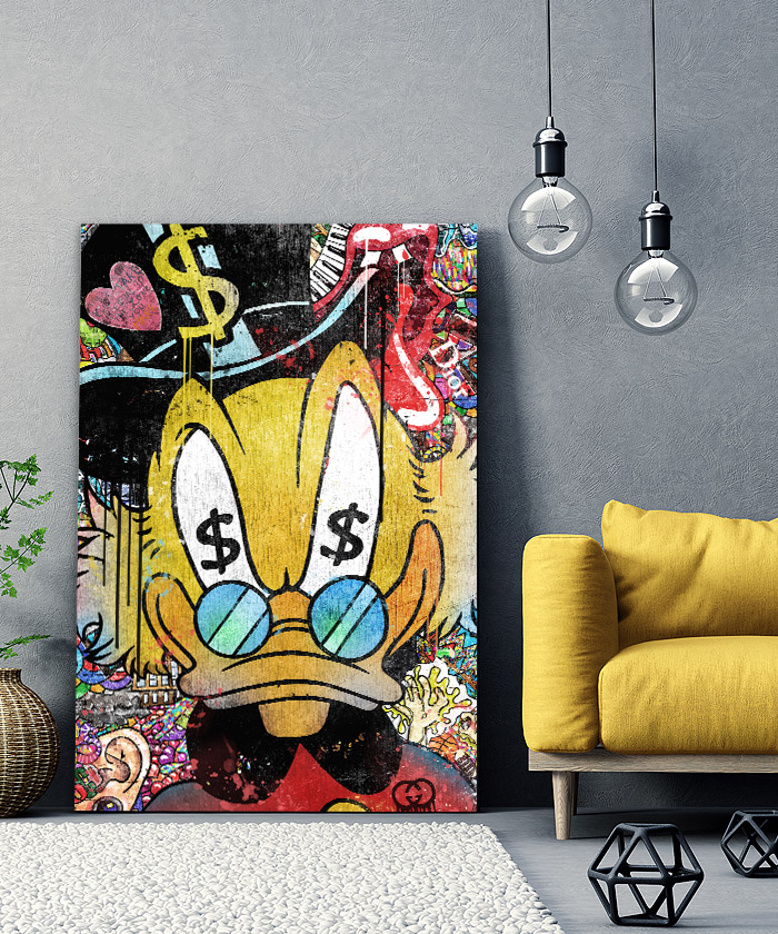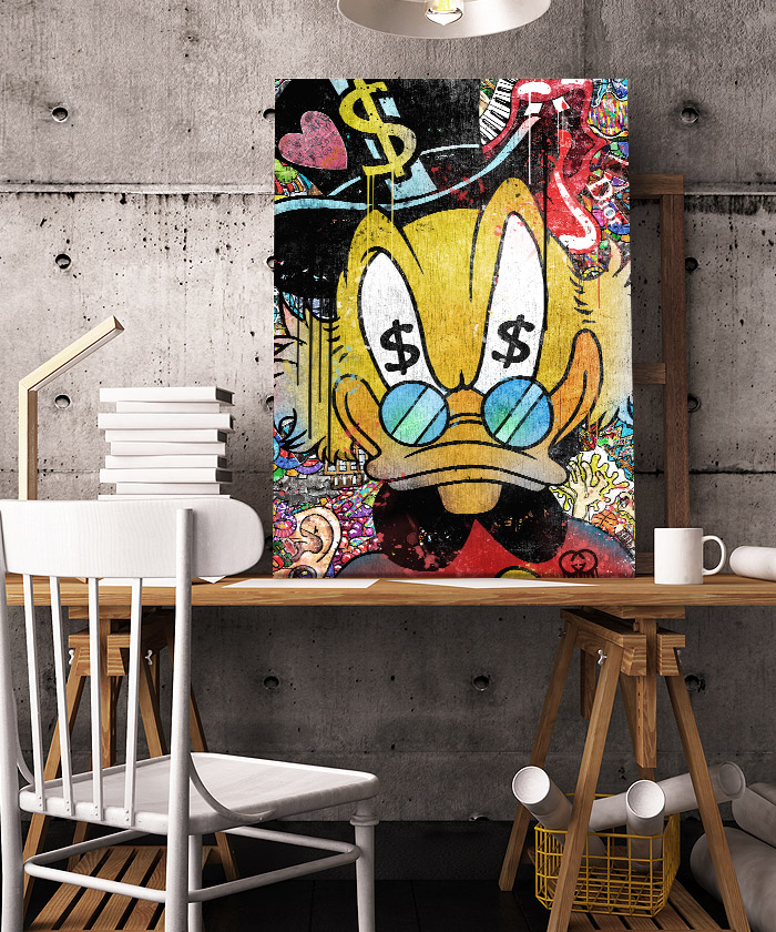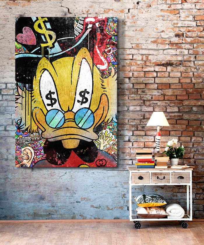 Nous vous présentons le tableau déco Picsou Dollars Street Art. Si vous aimez le monde des cartoon, vous devriez aimer ce tableau déco de Picsou autant que nous. En vous proposant ce tableau décoratif, nous souhaitons apporter un zeste d’originalité à votre intérieur. Cette toile propose une touche à la fois urbaine et originale.