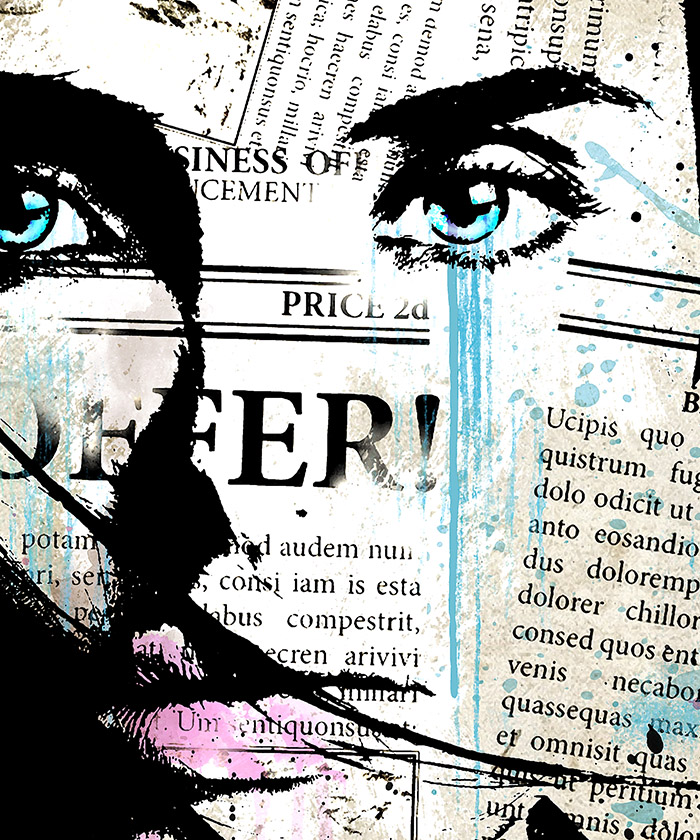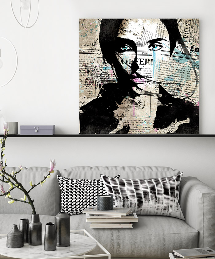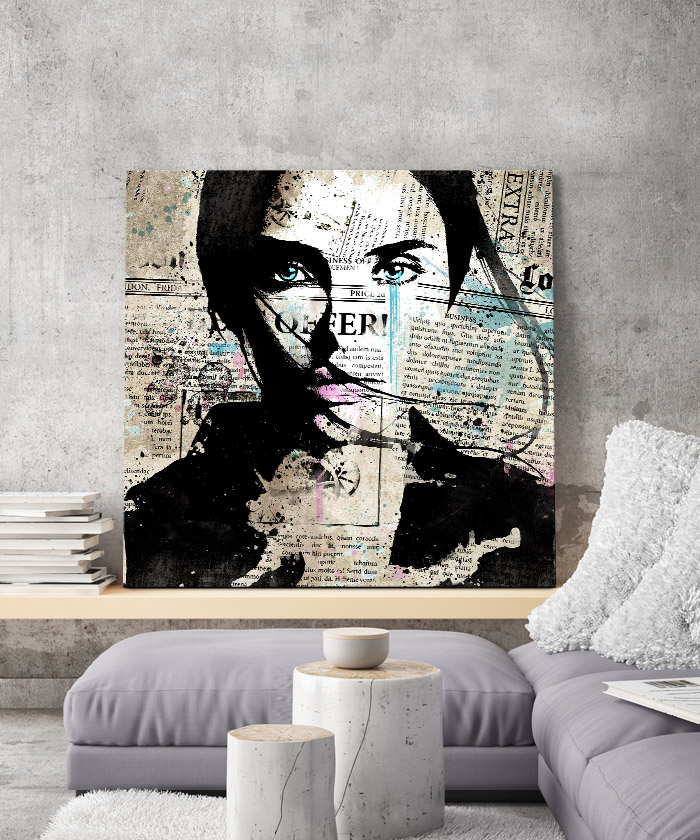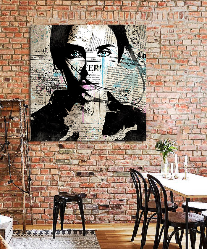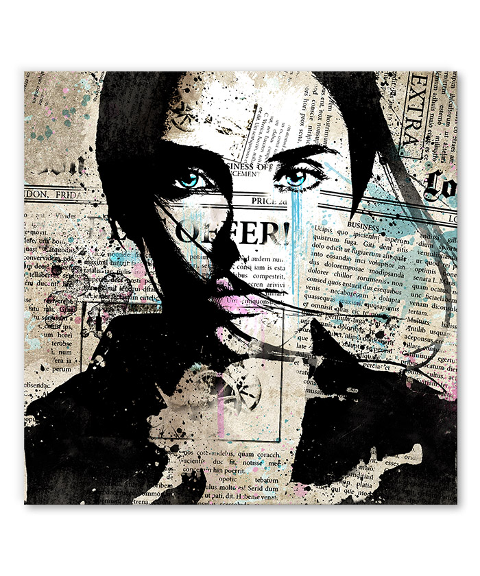 Tableau déco Cyndie portrait femme vieux journaux pop art