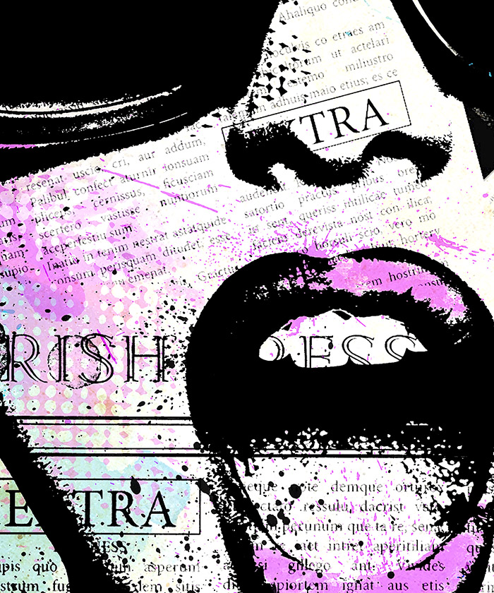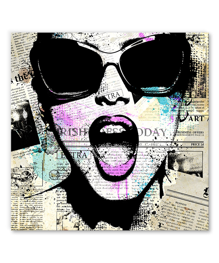 Tableau déco Fanny portrait femme vieux journaux pop art