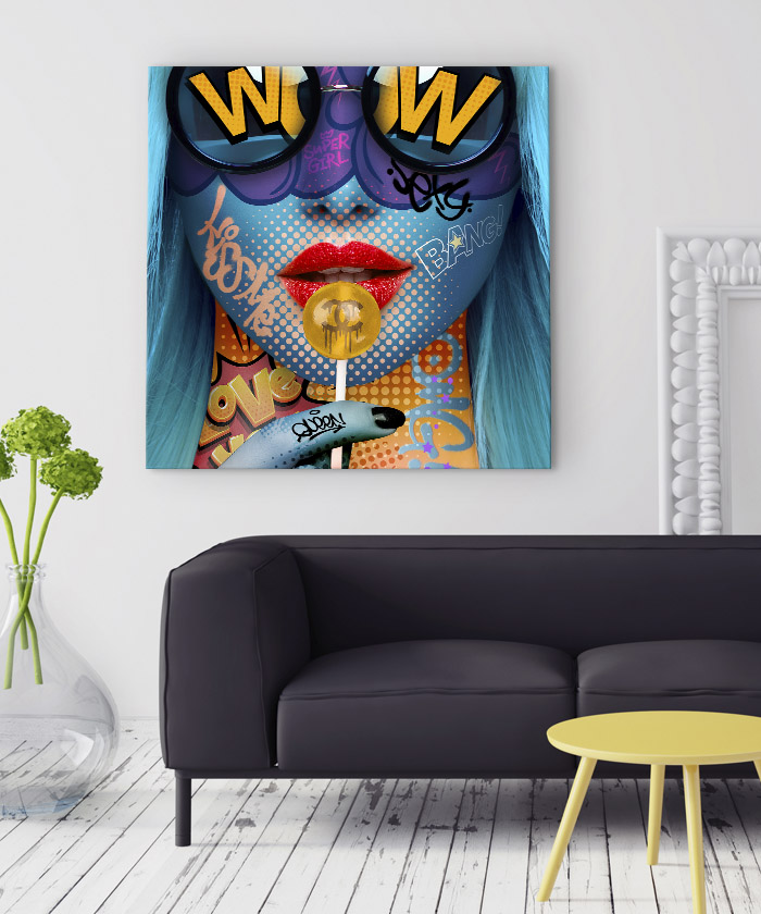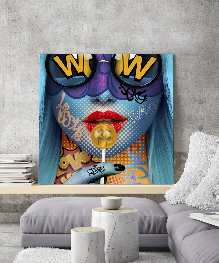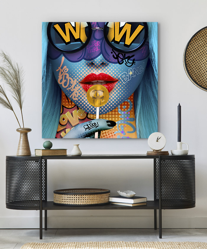 Nous vous présentons le tableau déco pop art femme sucette chanel wow. Si vous aimez la décoration pop-art, vous devriez aimer ce tableau déco de femme sucette autant que nous. En vous proposant ce tableau décoratif, nous souhaitons apporter un zeste d’originalité à votre intérieur. Cette toile propose une touche à la fois chic et design.