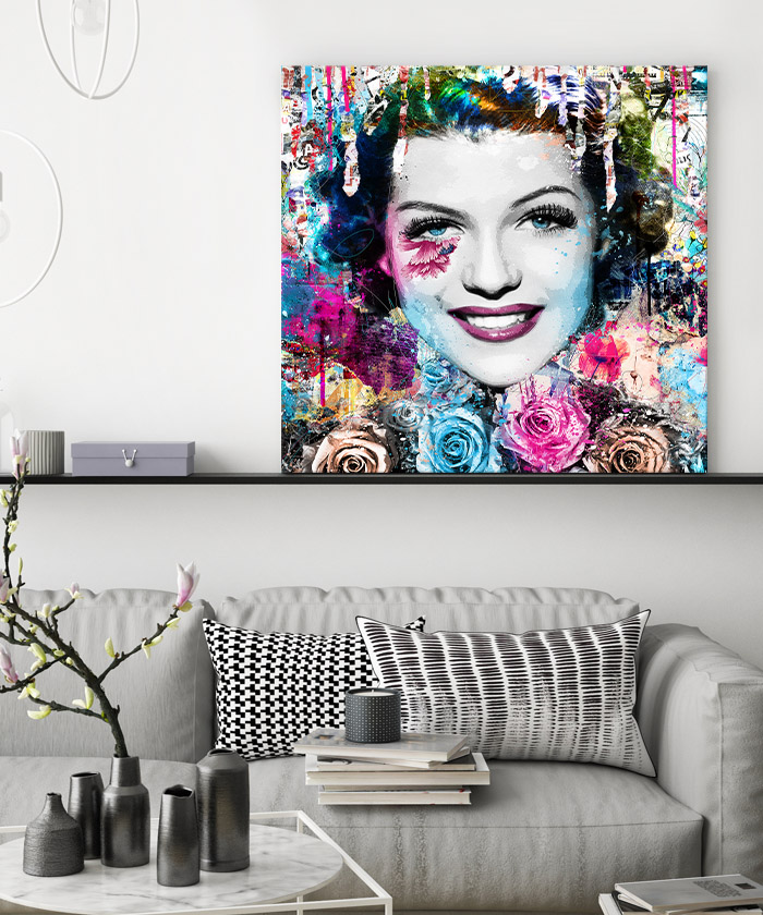 Nous vous présentons le tableau déco Rita Hayworth pop art. Si vous aimez cette célébrité, vous devriez aimer ce tableau déco de Rita Hayworth autant que nous. En vous proposant ce tableau décoratif, nous souhaitons apporter un zeste d’originalité à votre intérieur. Cette toile propose une touche à la fois glamour et design.
