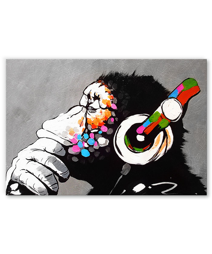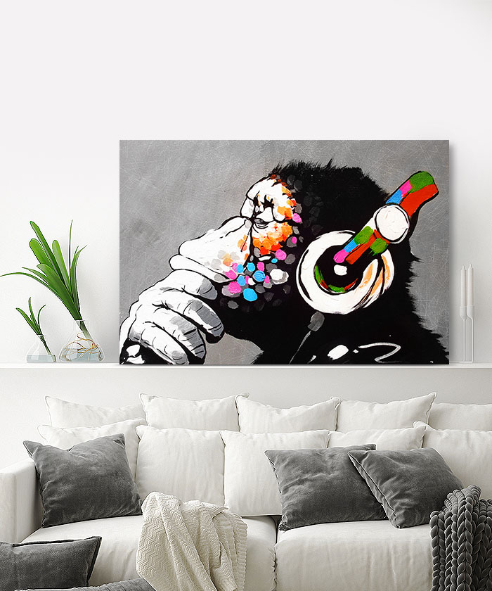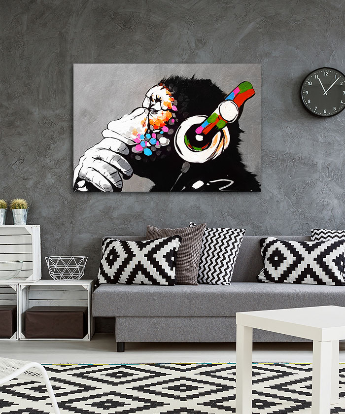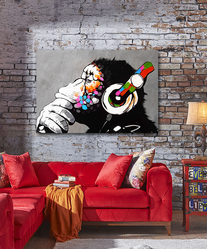 Nous vous présentons le tableau déco singe music pop art. Si vous faites partie de ceux qui sont fans de cet animal, vous devriez aimer ce tableau déco de singe autant que nous. En vous proposant ce tableau décoratif, nous souhaitons apporter un zeste d’originalité à votre intérieur. Cette toile propose une touche à la fois animale et pop-art.