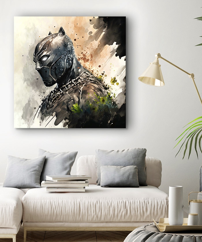Nous vous présentons le tableau déco portrait Black Panther aquarelle pastel. Si vous aimez ce super-héros, vous devriez aimer ce tableau déco de Black Panther autant que nous. En vous proposant ce tableau décoratif, nous souhaitons apporter un zeste d’originalité à votre intérieur. Cette toile propose une touche à la fois moderne et design.