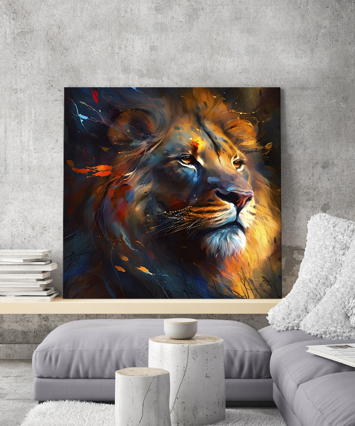 Nous vous présentons le tableau déco portrait de lion dans le vent. Si vous faites partie de ceux qui sont fans de cet animal, vous devriez aimer ce tableau déco de lions autant que nous. En vous proposant ce tableau décoratif, nous souhaitons apporter un zeste d’originalité à votre intérieur. Cette toile propose une touche à la fois contemporain et design.