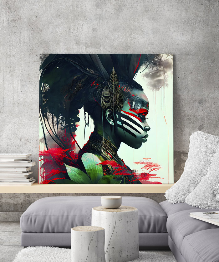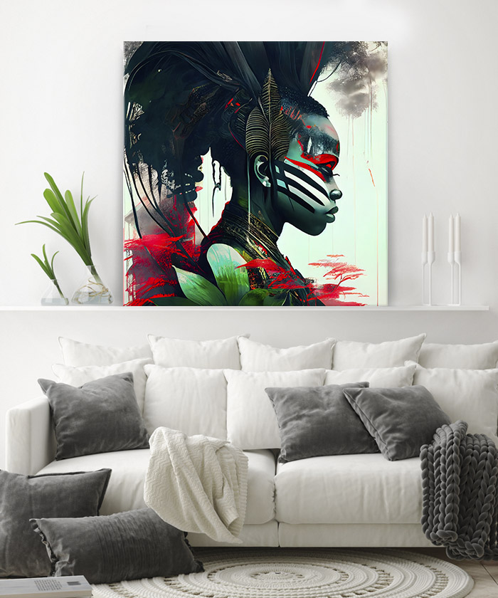 Nous vous présentons le tableau déco portrait femme africaine fleurs sauvages. Si vous aimez la peinture, vous devriez aimer ce tableau déco de femme africaine autant que nous. En vous proposant ce tableau décoratif, nous souhaitons apporter un zeste d’originalité à votre intérieur. Cette toile propose une touche à la fois ethnique et chic.