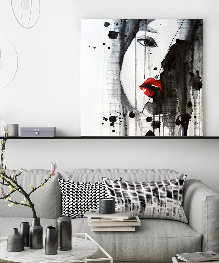 Chez Tableau Déco, nous réalisons tous les visuels de nos tableaux décoratifs. Notre métier, c’est aussi la création artistique. Ainsi, vous ne retrouverez nos tableaux nulle part ailleurs. Nous fabriquons ce tableau déco portrait femme aquarelle noire en France, dans notre atelier de région parisienne.