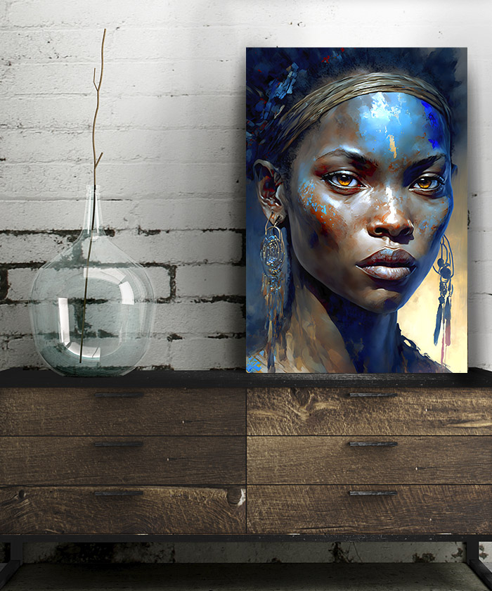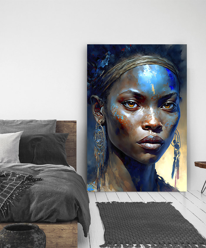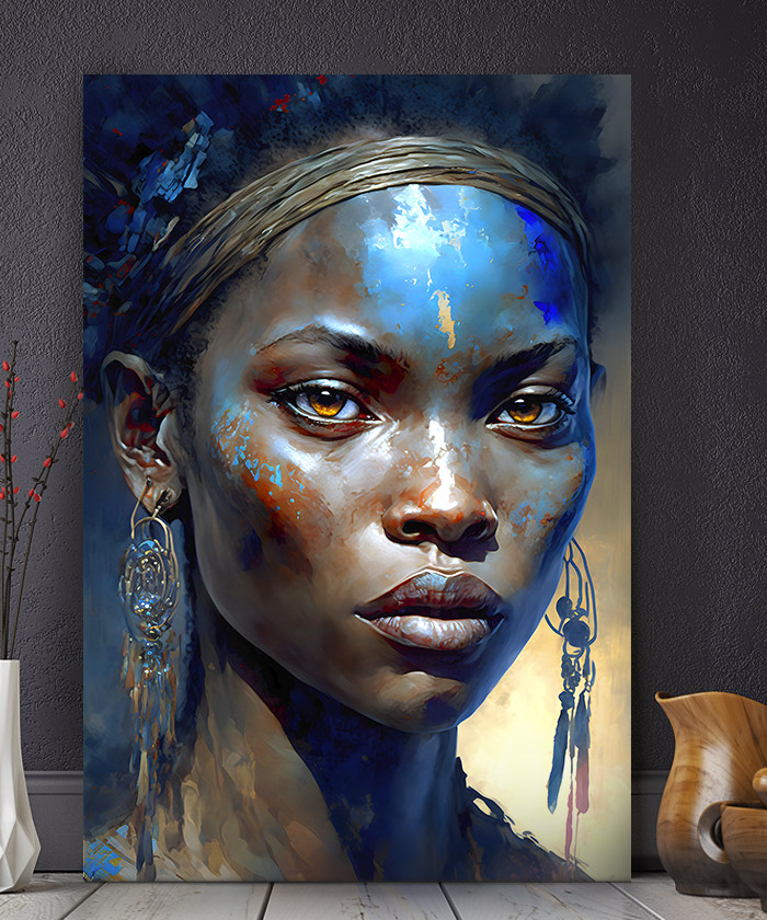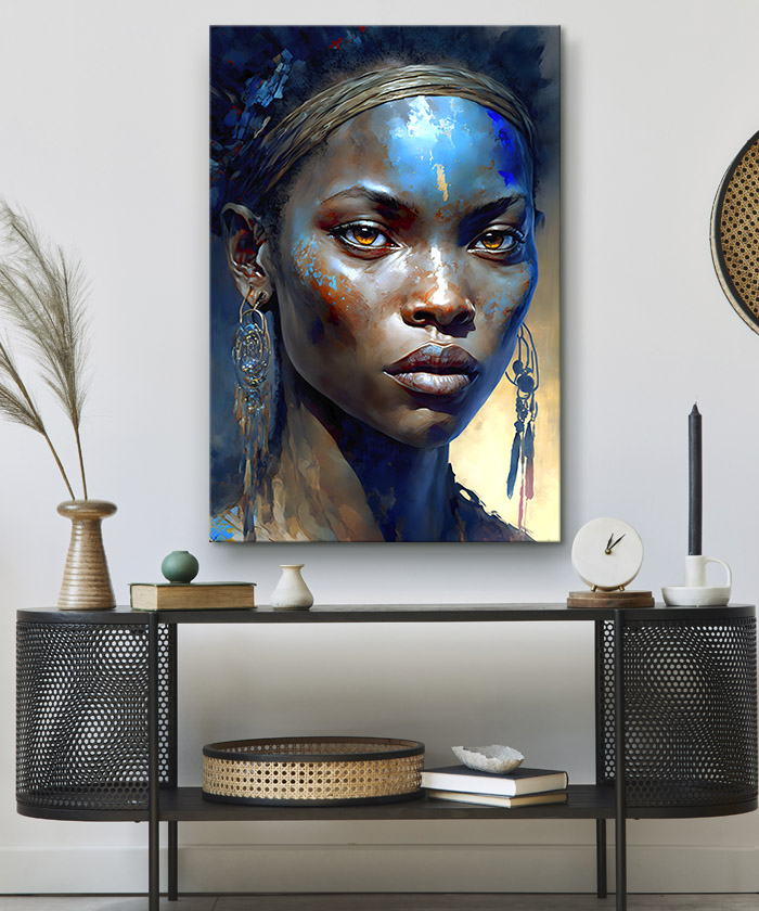 Nous vous présentons le tableau déco portrait femme africaine traditionnelle peinture. Si vous aimez la peinture, vous devriez aimer ce tableau déco de femme africaine autant que nous. En vous proposant ce tableau décoratif, nous souhaitons apporter un zeste d’originalité à votre intérieur. Cette toile propose une touche à la fois ethnique et moderne.