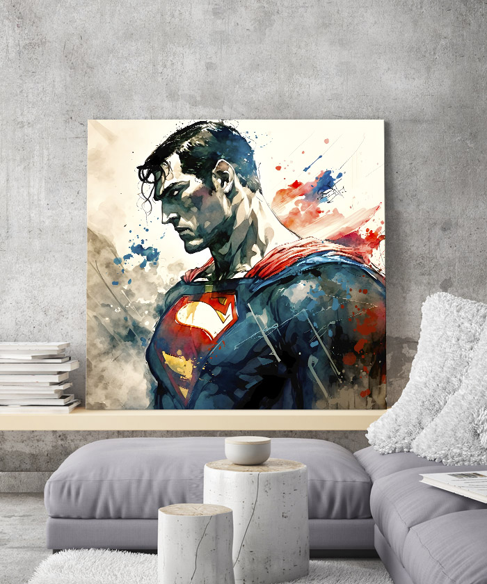 Nous vous présentons le tableau déco portrait Superman aquarelle pastel. Si vous aimez ce super-héros, vous devriez aimer ce tableau déco de Superman autant que nous. En vous proposant ce tableau décoratif, nous souhaitons apporter un zeste d’originalité à votre intérieur. Cette toile propose une touche à la fois sobre et vintage.
