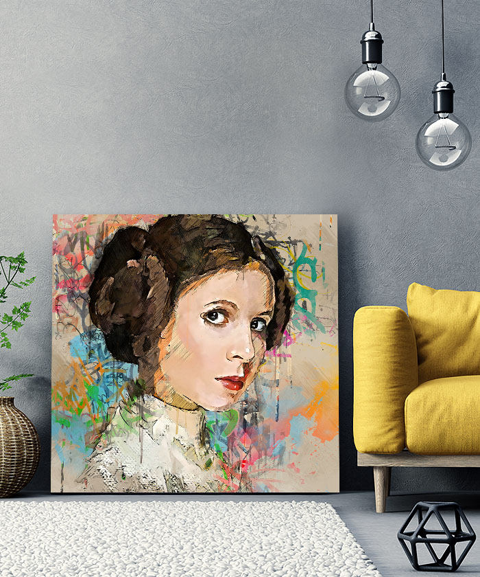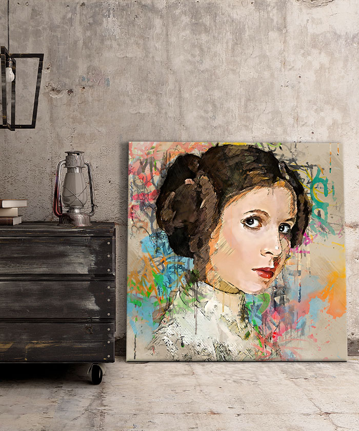 Nous vous présentons le tableau déco Star Wars Princesse Leia Street Art. Si vous aimez cette série de film, vous devriez aimer ce tableau déco de Star Wars autant que nous. En vous proposant ce tableau décoratif, nous souhaitons apporter un zeste d’originalité à votre intérieur. Cette toile propose une touche à la fois moderne et vintage.