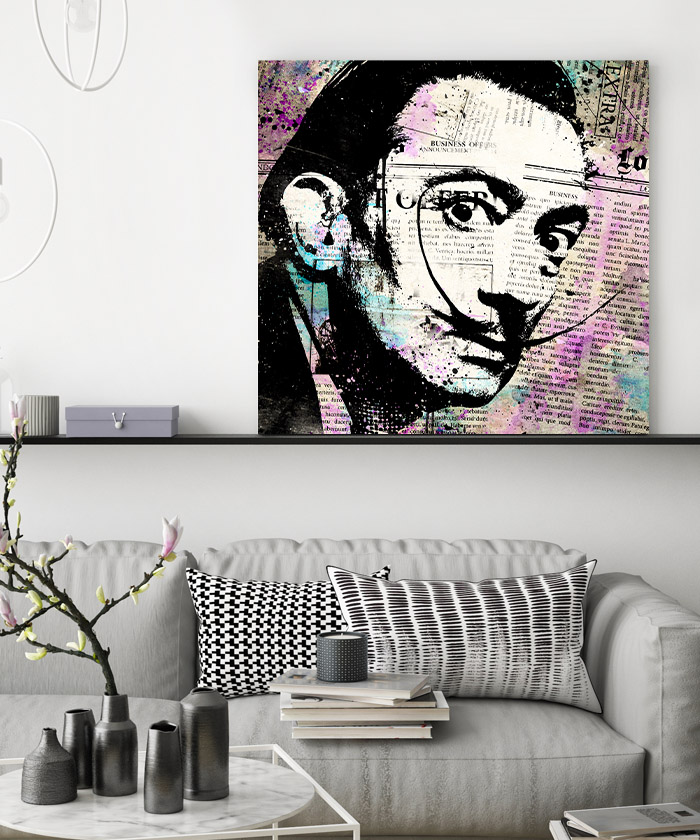 Nous vous présentons le tableau déco Salvador Dali pop art vintage. Si vous aimez cette célébrité, vous devriez aimer ce tableau déco de Salvador Dali autant que nous. En vous proposant ce tableau décoratif, nous souhaitons apporter un zeste d’originalité à votre intérieur. Cette toile propose une touche à la fois vintage et pop.