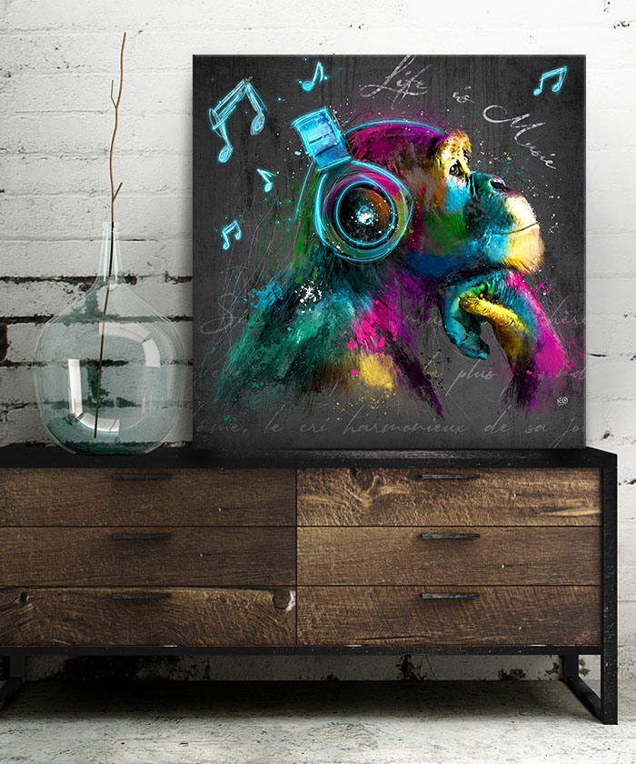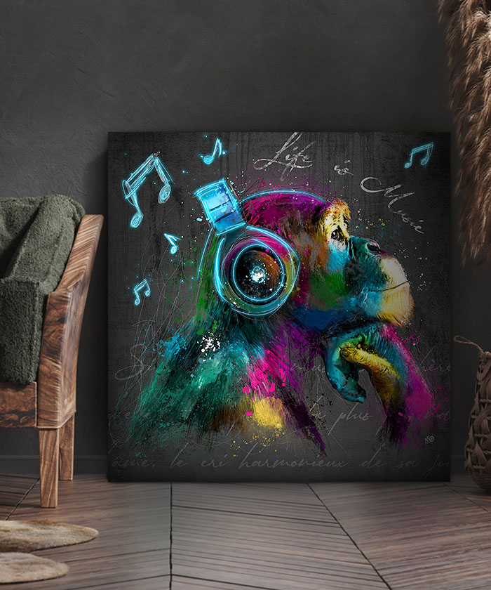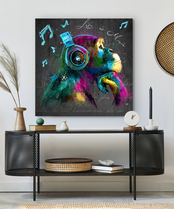 Nous vous présentons le tableau déco Singe casque musique Pop Art Multicolor. Si vous faites partie de ceux qui sont fans de cet animal, vous devriez aimer ce tableau déco de singe autant que nous. En vous proposant ce tableau décoratif, nous souhaitons apporter un zeste d’originalité à votre intérieur. Cette toile propose une touche à la fois colorée et pop art.