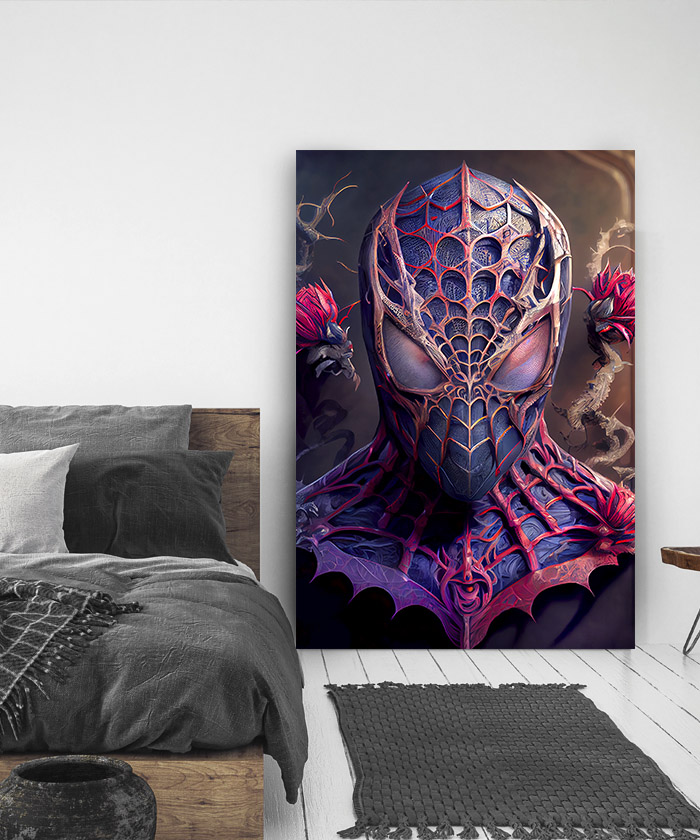Tableau déco Spiderman Fleurs Roses Sauvages