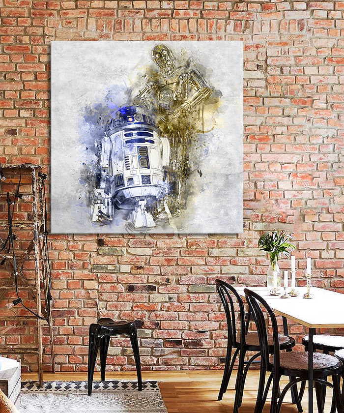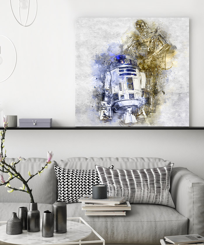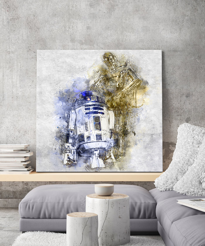 Nous vous présentons le tableau déco Star Wars R2D2 et Sispo. Si vous aimez ce film, vous devriez aimer ce tableau déco de Star Wars autant que nous. En vous proposant ce tableau décoratif, nous souhaitons apporter un zeste d’originalité à votre intérieur. Cette toile propose une touche à la fois artistique et élégante.
