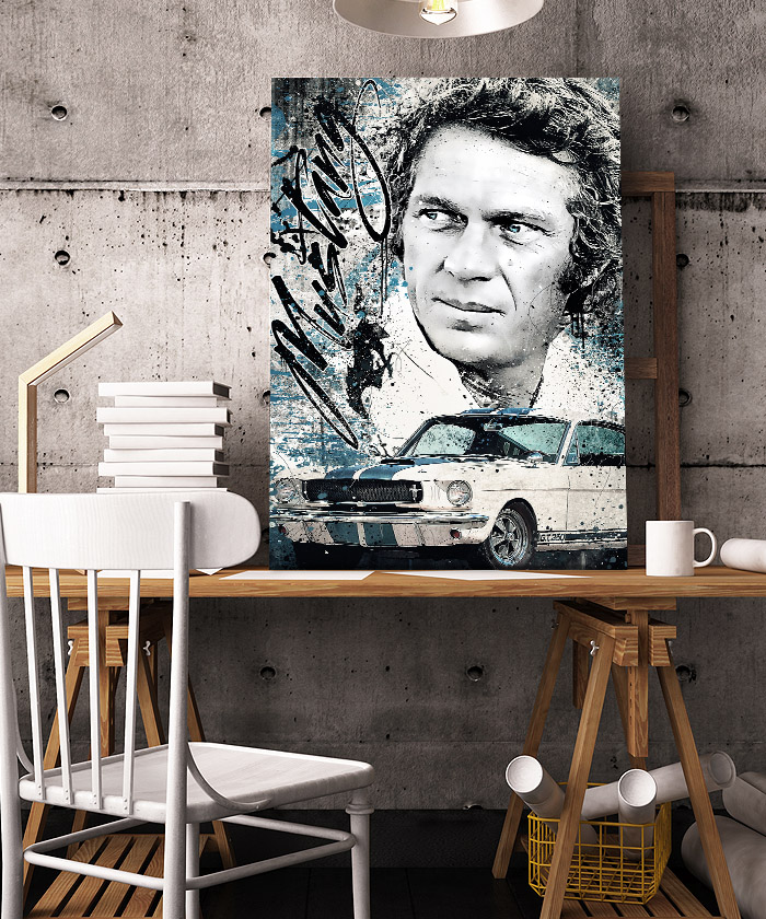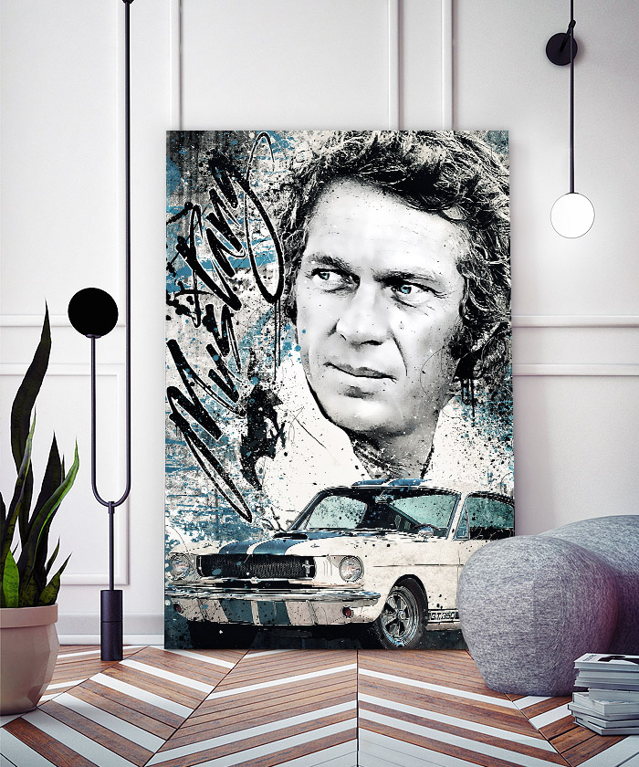 Nous vous présentons le tableau déco Steve McQueen Mustang GT350. Si vous aimez cette célébrité, vous devriez aimer ce tableau déco de Steve McQueen autant que nous. En vous proposant ce tableau décoratif, nous souhaitons apporter un zeste d’originalité à votre intérieur. Cette toile propose une touche à la fois vintage et chic.
