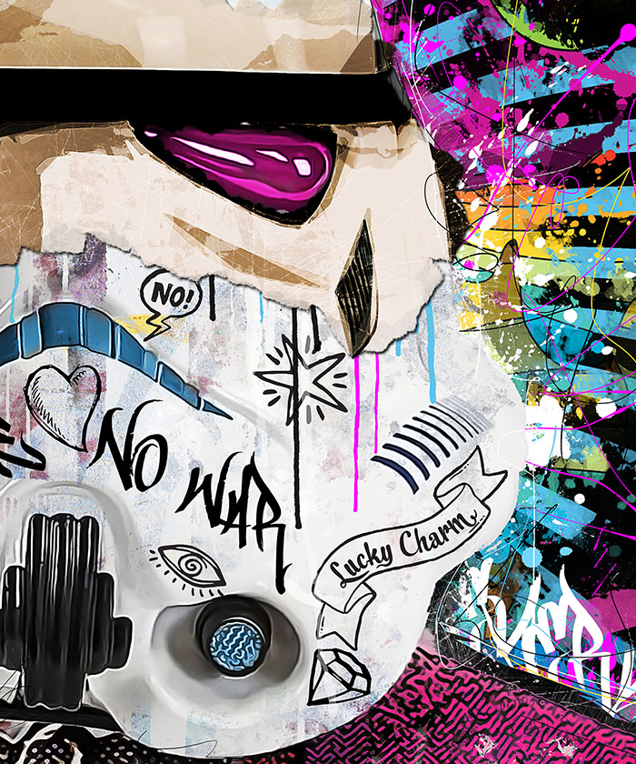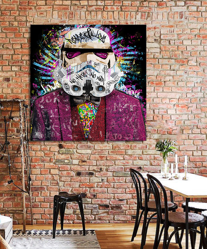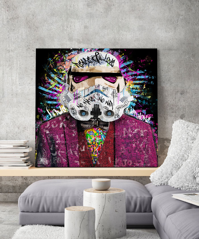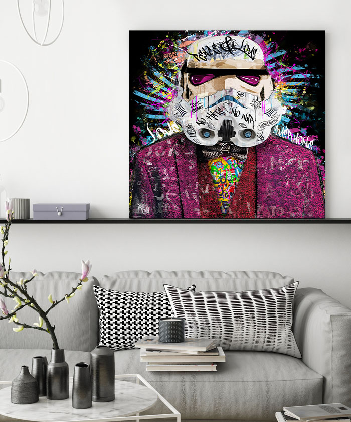 Nous vous présentons le tableau déco Stormtrooper Star Wars Street Art Pop. Si vous aimez l’art urbain, vous devriez aimer ce tableau déco de Stormtrooper autant que nous. En vous proposant ce tableau décoratif, nous souhaitons apporter un zeste d’originalité à votre intérieur. Cette toile propose une touche à la fois colorée et design.