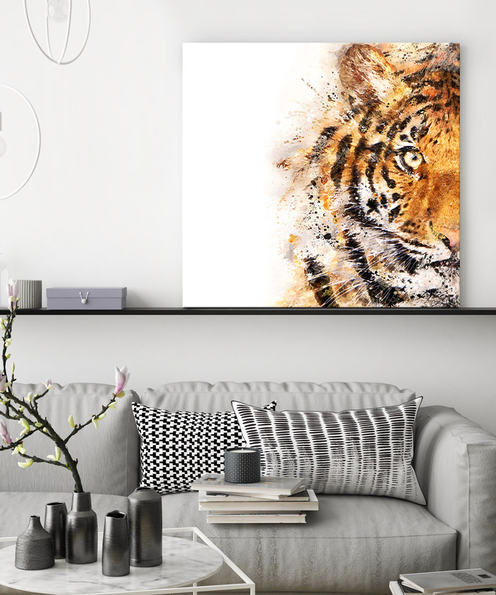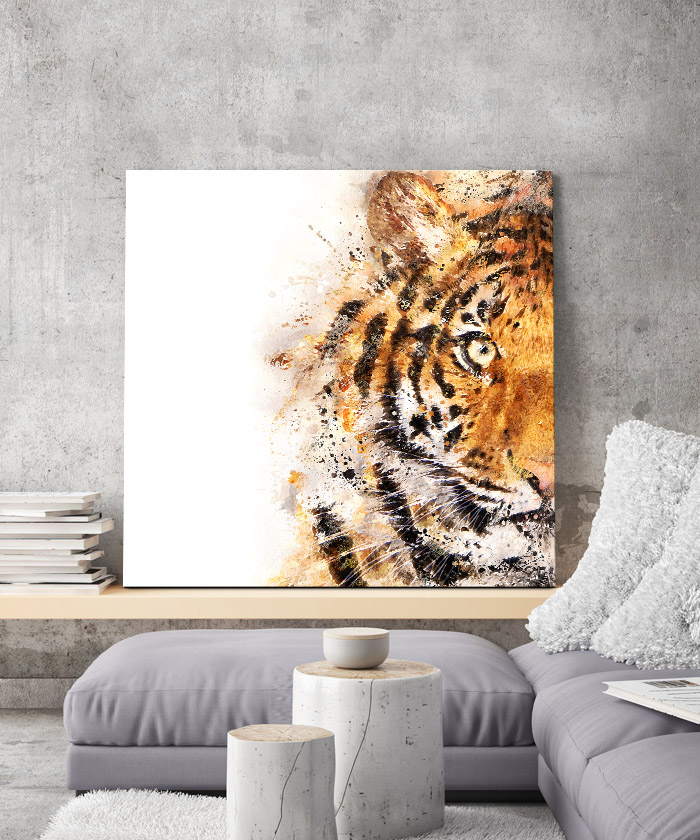 Chez Tableau Déco, nous réalisons tous les visuels de nos tableaux décoratifs. Notre métier, c’est aussi la création artistique. Ainsi, vous ne retrouverez nos tableaux nulle part ailleurs. Nous fabriquons ce tableau déco tigre aquarelle. en France, dans notre atelier de région parisienne.