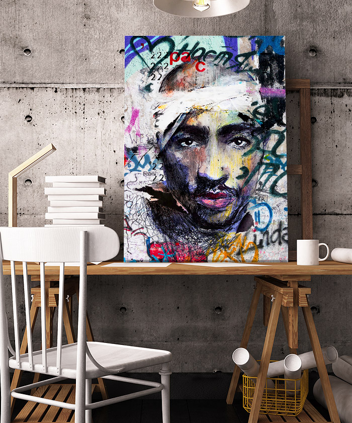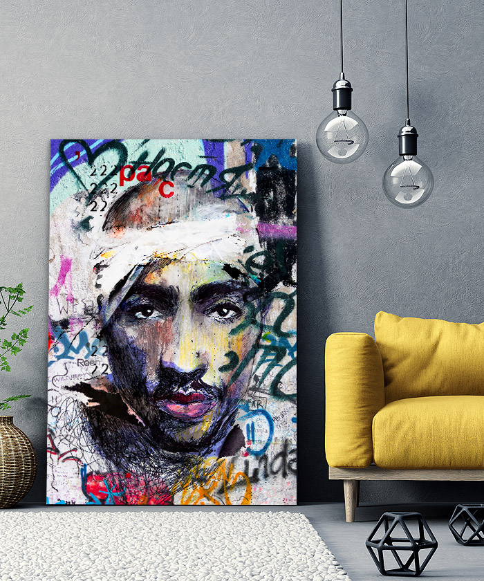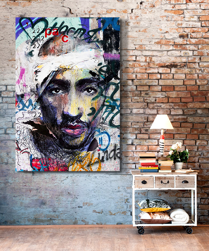 Nous vous présentons le tableau déco Tupac Shakur 2pac Hip Hop Street Art. Si vous aimez cette célébrité, vous devriez aimer ce tableau déco de Tupac autant que nous. En vous proposant ce tableau décoratif, nous souhaitons apporter un zeste d’originalité à votre intérieur. Cette toile propose une touche à la fois street-art et vintage.