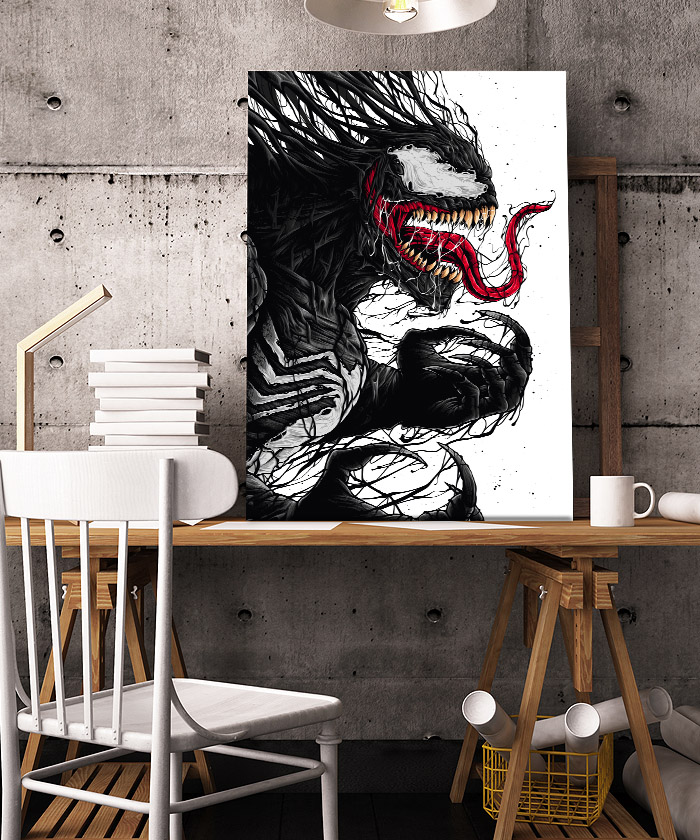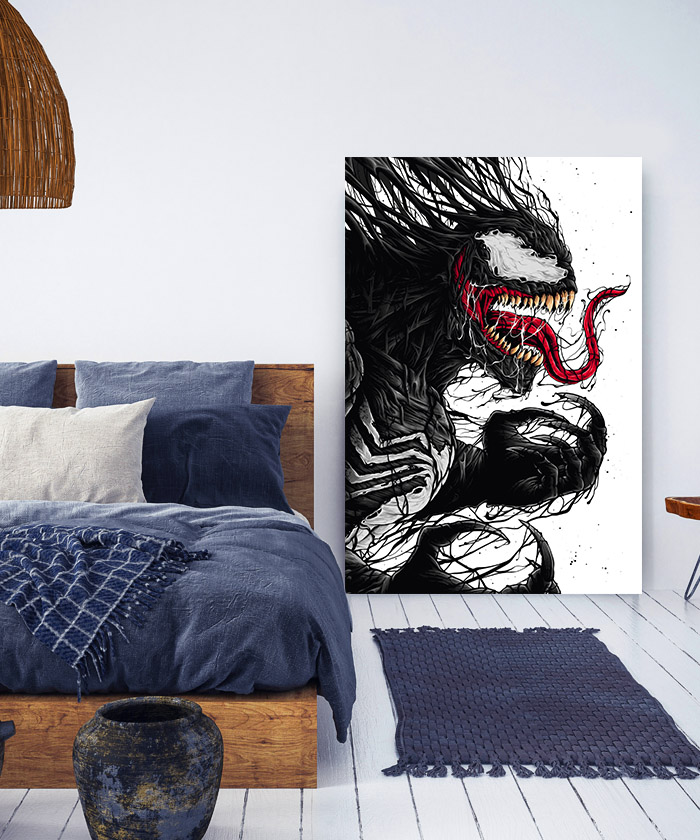 Nous vous présentons le tableau déco Venom dessin – Comics Marvel. Si vous aimez ce super-héros, vous devriez aimer ce tableau déco de Venom autant que nous. En vous proposant ce tableau décoratif, nous souhaitons apporter un zeste d’originalité à votre intérieur. Cette toile propose une touche à la fois moderne et design.