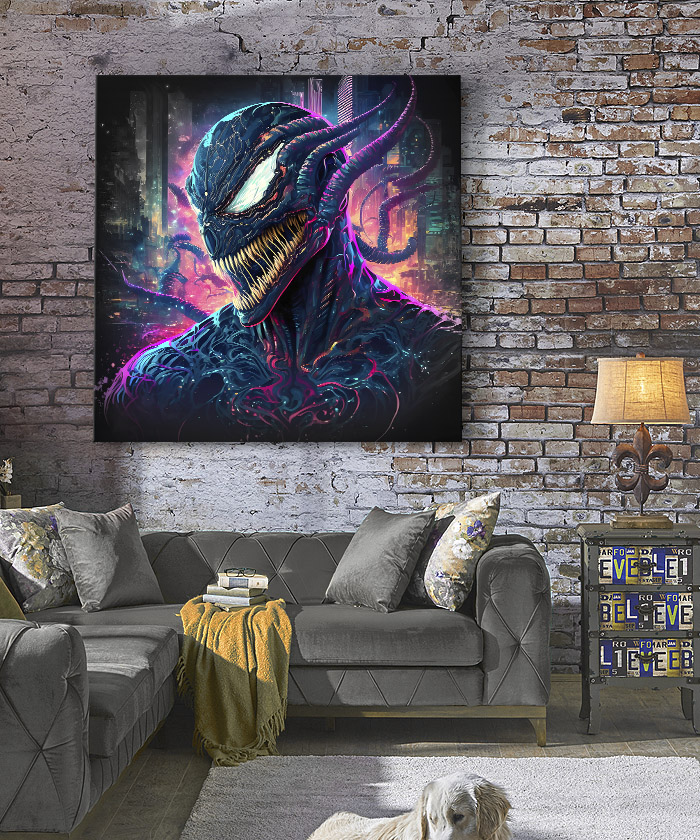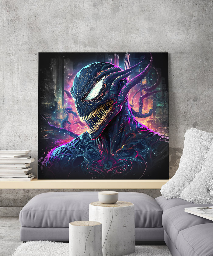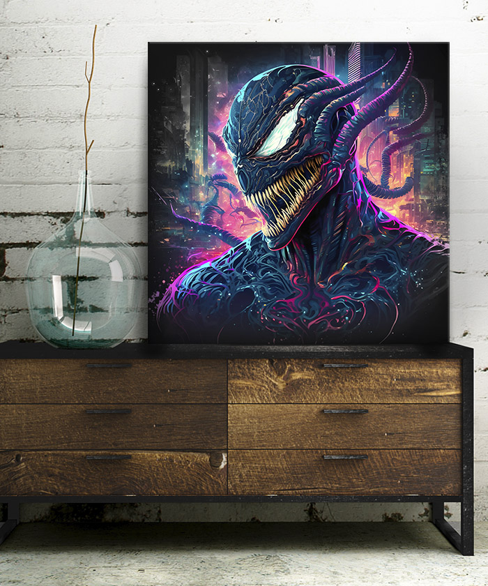 Nous vous présentons le tableau déco Venom Pop Art Marvel. Si vous aimez ce super-héros, vous devriez aimer ce tableau déco de Venom autant que nous. En vous proposant ce tableau décoratif, nous souhaitons apporter un zeste d’originalité à votre intérieur. Cette toile propose une touche à la fois artistique et contemporaine.