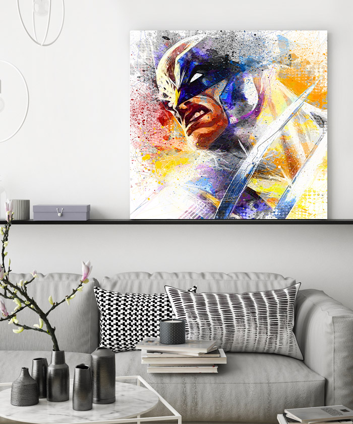 Nous vous présentons le tableau déco Wolverine Marvel. Si vous aimez ce super-héros, vous devriez aimer ce tableau déco de Wolverine autant que nous. En vous proposant ce tableau décoratif, nous souhaitons apporter un zeste d’originalité à votre intérieur. Cette toile propose une touche à la fois artistique et colorée.