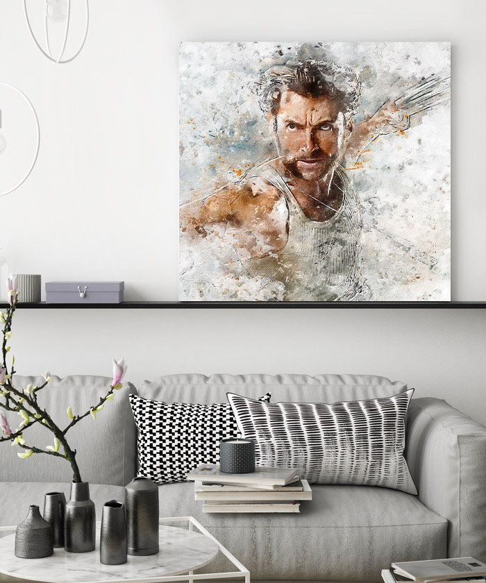 Nous vous présentons le tableau déco Wolverine Hugh Jackman. Si vous aimez ce super-héros, vous devriez aimer ce tableau déco de Wolverine autant que nous. En vous proposant ce tableau décoratif, nous souhaitons apporter un zeste d’originalité à votre intérieur. Cette toile propose une touche à la fois artistique et élégante.